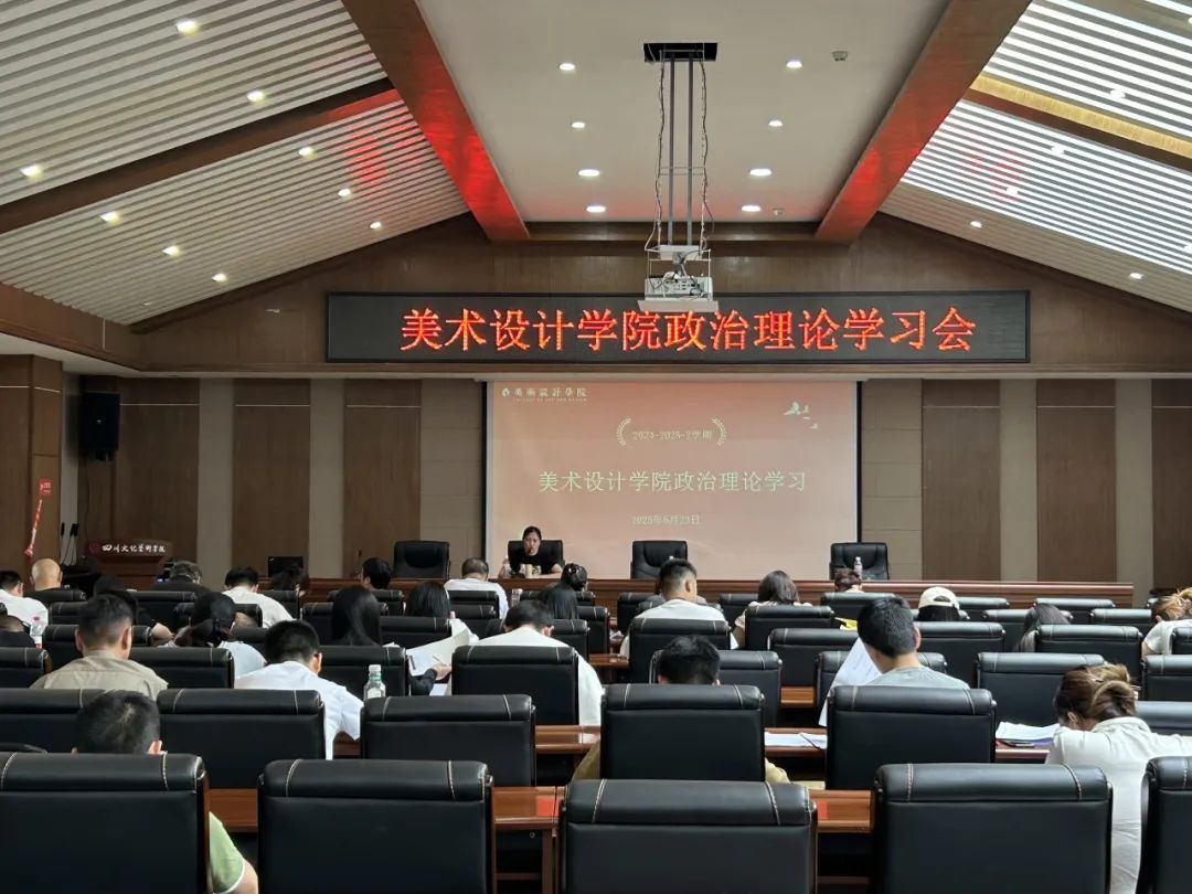 2025年6月23日,美术设计学院在文昌学宫一号会议室召开2024-2025-2学期第八次政治理论学习会。院长孙文忠、副院长焦长虹、罗良及全院教职工参加会议,会议由党总支书记张佳主持。