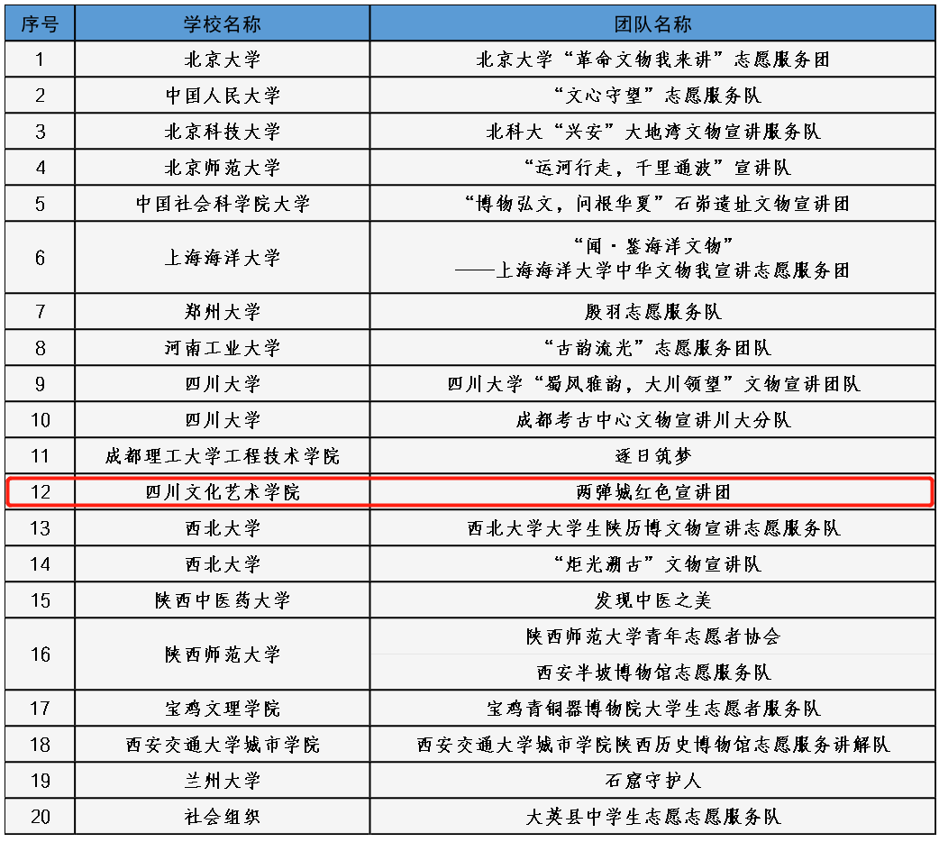 该活动得到了全国各地各高校志愿服务团队的广泛关注和积极参与,共有230所高校和10个社会组织提交了申报材料。为保证团队遴选工作的公正性、公开性和专业性,主办单位邀请中国社会科学院考古研究所、全国学校共青团研究中心、中央美术学院等有关专家,组织召开了评审会,遴选确定了20支“中华文物宣讲团”。