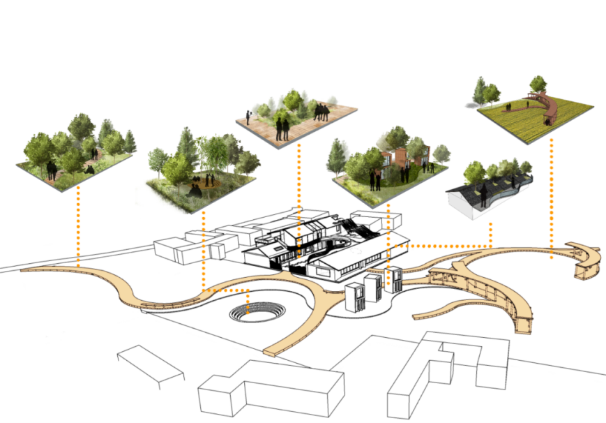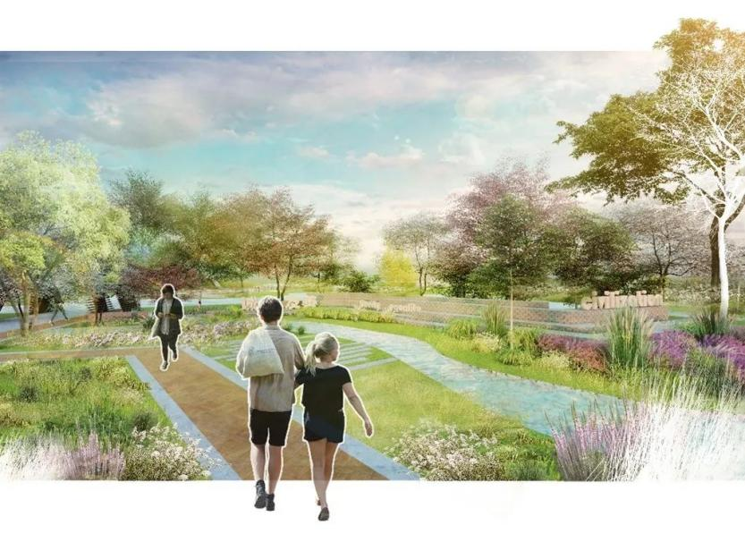 本次项目为绵阳五里梁公园设计,主要是将项目地“转荒为园”,我们将依据景观设计知识,对场地内部进行功能分区,打造一个以 “生活+教育”为主题的沉浸式体验的城市公园。根据现状及与周边环境的联系,公园被划分为五大主题空间,分别为动感活力区、综合服务区、文化展示区、康养休闲区、生态科普区,将在各个分区里穿插展示“沉浸智慧”“沉浸生态”、“沉浸游乐”三类沉浸空间。将沉浸式体验与城市公园相结合,对城市公园的沉浸式体验进行设计,打造一个让市民赏心悦目、畅情抒怀、寓教于乐的多功能公共体验空间。