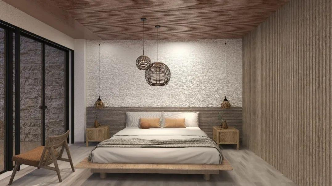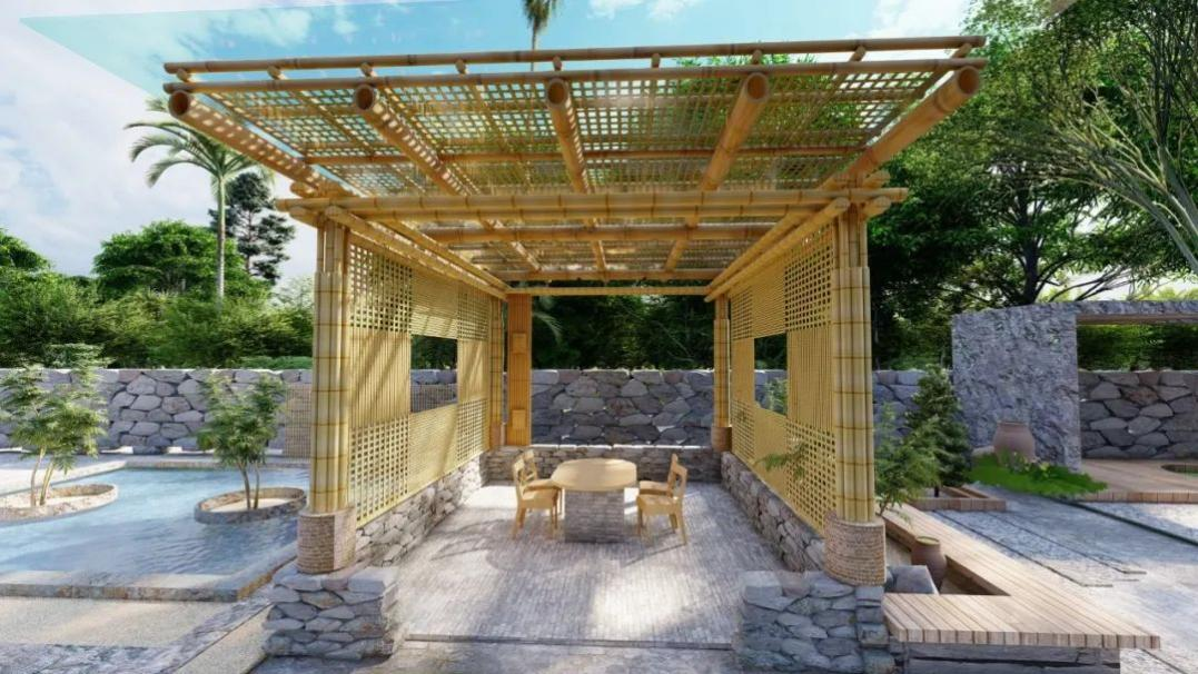 该案以“从回忆到回归”为主题,选用、天然木材、石材、竹材为主材;整体以嫩芽、梧桐叶作为设计元素,以流畅优美曲线带来自由随意的视觉美感与轻松空间氛围;打造具有地域文化风情的乡村生活体验空间乡土植物景观设计。