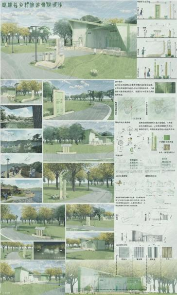 本次设计是对蝴蝶谷的整体提升,首先景观方面是运用五感与花境的交互来进行整体规划,更加提升了人们的感知和对花境的了解;第二就是对周边河道的治理,针对问题进行优化,发挥河道自身生态优势,并采取有效的防护措施,促进河道治理和环境保护同步进行、协同推进;第三个就是运用导视系统将这些富有诗意的场地串联起来,采用简单和自然的材料,让导视系统更好的融入到乡村景观中。