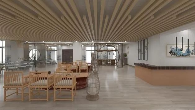 静茶淡雅,君子淡泊。简洁的设计方法使室内空间看起来非常精致,用最少的语言表达最丰富的内涵。静茶阁为现代喧嚣的都市提供了安静的品茶地,设计了文创区与茶文化品牌展馆,通过地面抬升,将文创、展馆的动与茶室的静分割开来,为游客提供更好的体验。