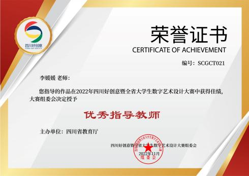 李媛媛老师在2022年四川好创意暨全省大学生数字艺术设计大赛中获得优秀指导教师奖
