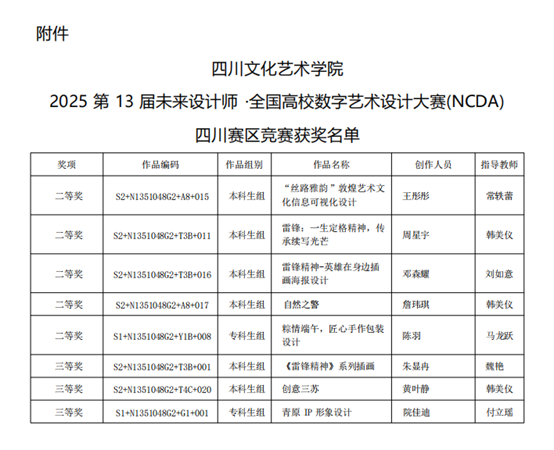 2025第13届未来设计师·全国高校数字艺术设计大赛(NCDA)获奖名单