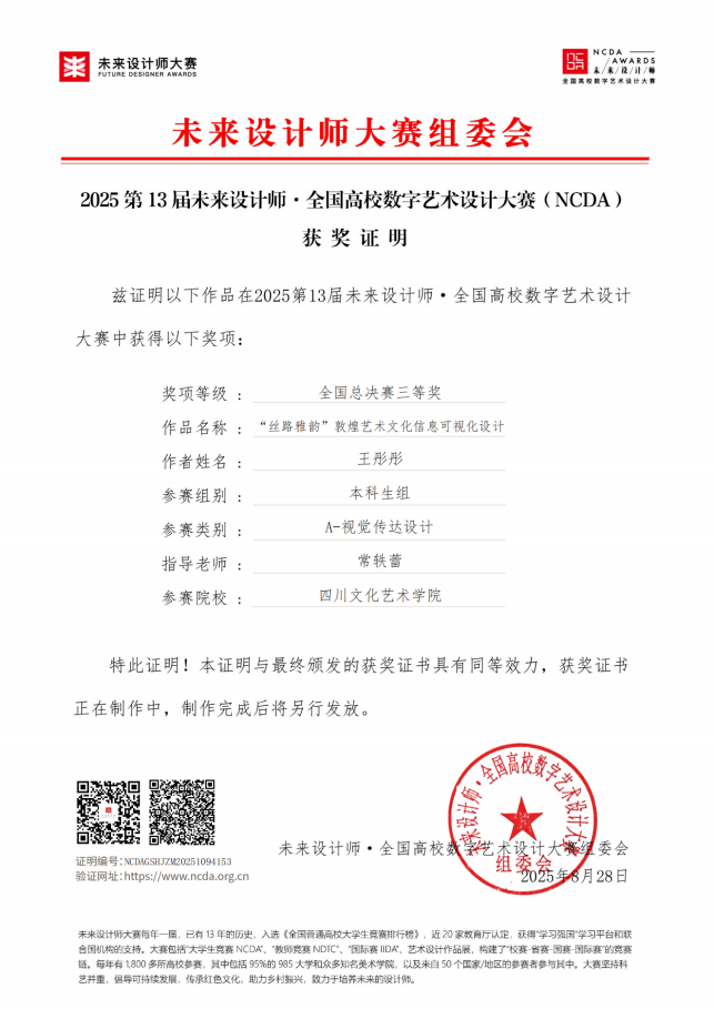2025第13届未来设计师·全国高校数字艺术设计大赛全国总决赛获奖证书