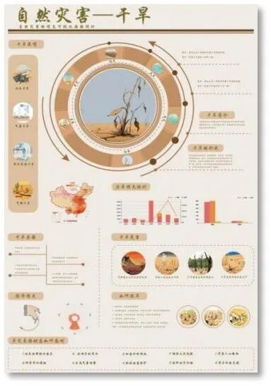 设计说明:本系列信息可视化海报聚焦于地震、泥石流及干旱三种灾害,旨在通过清晰的视觉语言,系统解读其成因、危害及防灾关键信息。整体采用统一的浅棕色调,营造专业、沉稳氛围,契合自然灾害主题的严肃感。增强防灾减灾意识,兼具科普性与视觉观赏性,助力自然灾害信息的有效传播。