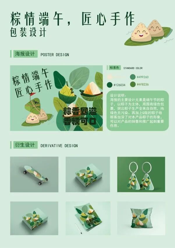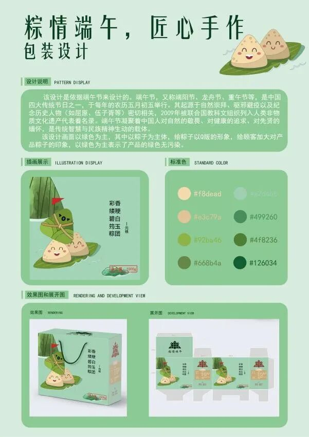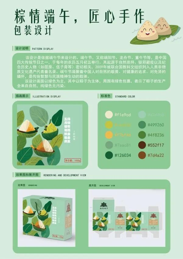 设计说明:设计灵感源自端午节。该节日又称龙舟节、端阳节,是中国重要的传统文化遗产(2009年被列入人类非物质文化遗产代表名录)。本次设计旨在通过视觉语言,展现其自然崇拜、驱邪避疫与纪念先贤的多重起源,以及赛龙舟、食粽等节俗特色。