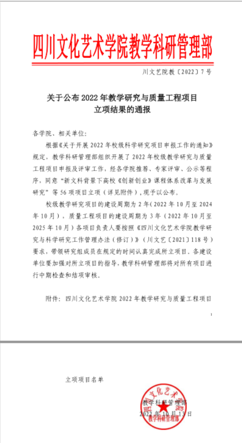 关于公布2022年教学研究与质量工程项目立项结果的通报