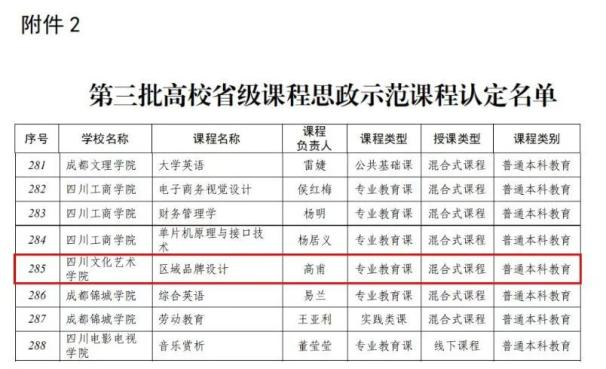 近日,四川省教育厅公示了第三批高等学校省级课程思政示范项目的认定结果。我校美术设计学院视觉传达设计专业高甫老师《区域品牌设计》课程被认定为省级“课程思政”示范课程。
