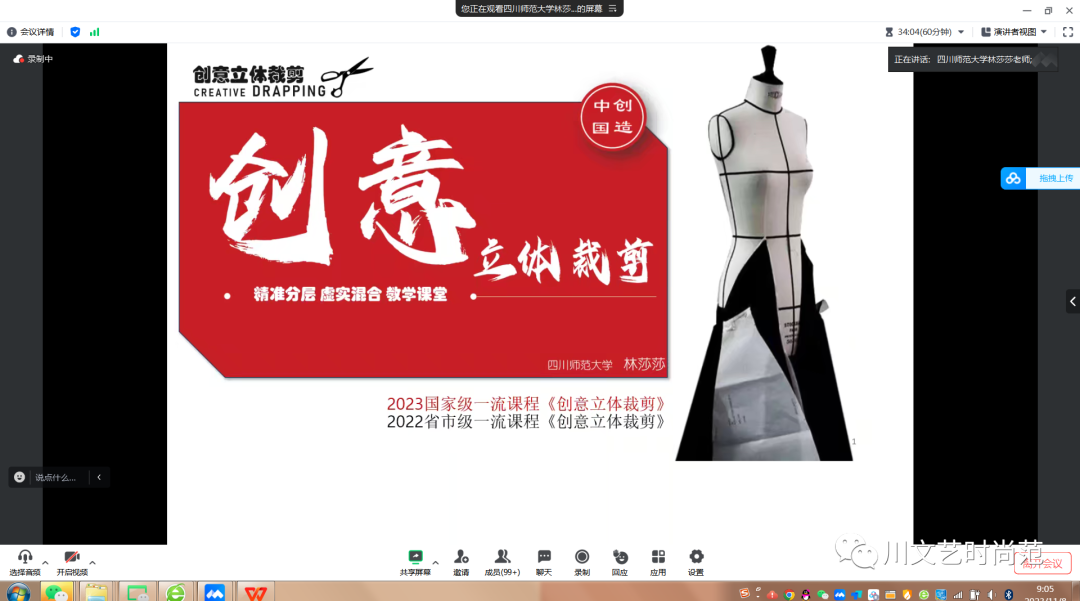 2023年11月08日上午9:00,四川文化艺术学院美术设计学院服装与服饰设计专业于腾讯会议举办了线上国家级一流课程分享课——“创意立体剪裁”。