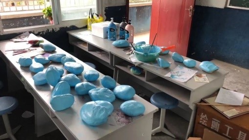 在此期间,视觉传达和环境设计的同学对鹅溪中学的艺术氛围进行了设计,美术学的同学对其进行具体实施。