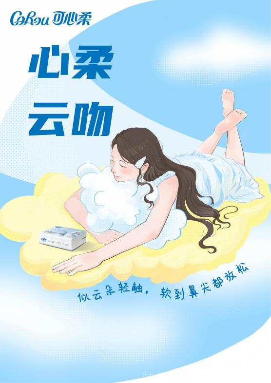 设计说明:以 “心柔云吻 + 泡润锁柔” 为核心,借云朵、泡泡传柔软保湿感,用松弛人物强化温柔呵护,联动卖点与情绪。