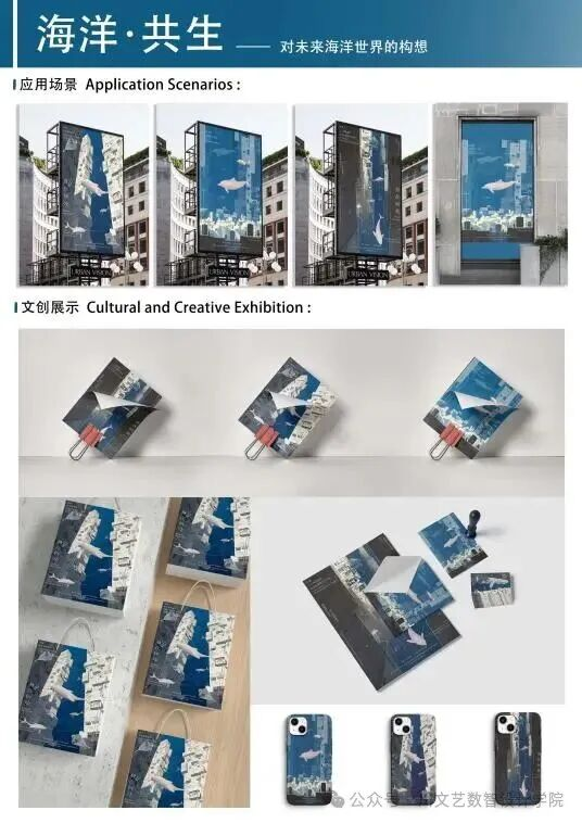 本系列海报以警示与呼吁为核心,构想未来海水淹没城市的场景,展现人类活动对海洋环境的深远影响,通过呈现中华白海豚在污染与栖息地被侵占中的困境,引发观者对海洋生态的反思,传达保护海洋、与海共生的迫切需求。将城市建筑与海洋场景融合,象征海平面上升与生态失衡的未来危机。残垣断壁与漂浮垃圾,直观展现人类对海洋的破坏。
