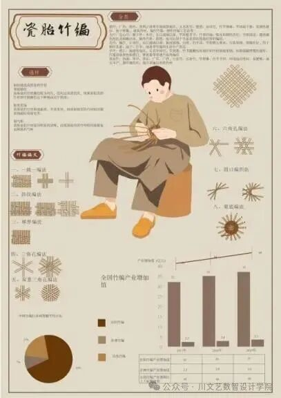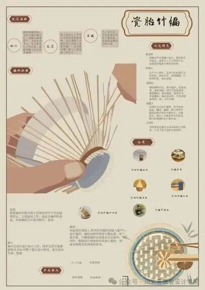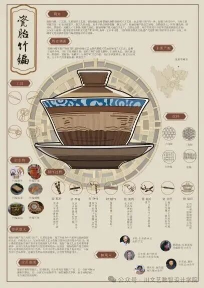 本作品灵感源自非物质文化遗产瓷胎竹编,它被誉为“东方艺术之花”。瓷胎竹编工艺繁杂,精选慈竹、再经烤色、染色制成竹丝等工序,既美观又能保护瓷器。其技艺特色为“精选料、特细丝、紧贴胎、密藏头、五彩图”。独特竹编与陶瓷融合彰显文化魅力,因其纪念性、地方性成为中外宾客优选纪念品,展现器物之韵。
