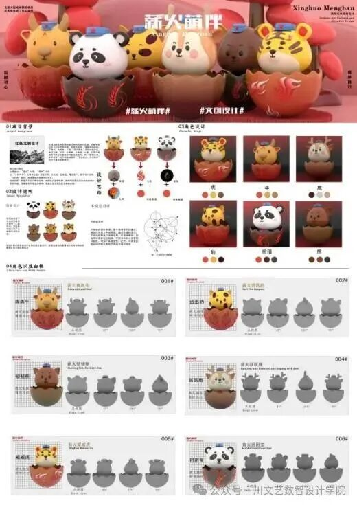 本系列以“不倒翁”为载体,展现“举重若轻,萌动人心”的独特魅力,“重”体现对革命精神敬畏,严谨考据符号源流;“轻”展现举重若轻智慧,如熊猫抱火种、小熊托星光;“萌”是Z世代沟通密码,采用叠词命名与无五官表情包式设计;“动”让器物因互动产生情感羁绊,摇摆触发彩蛋。如此让红色文化走出展柜,轻推皆是与历史的温柔回响。