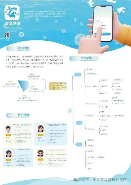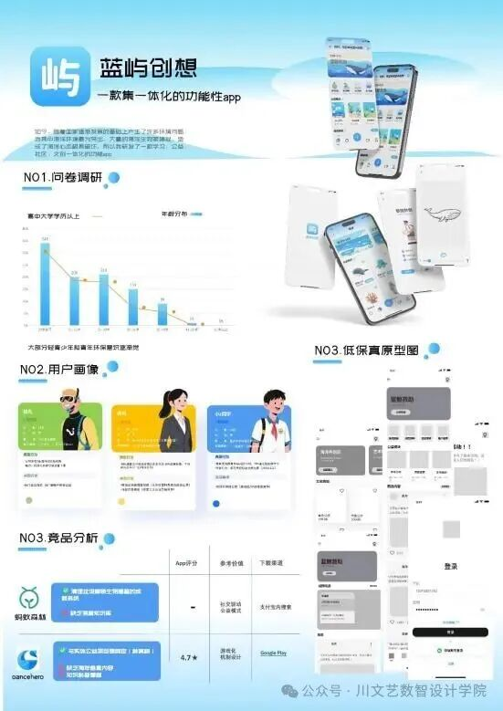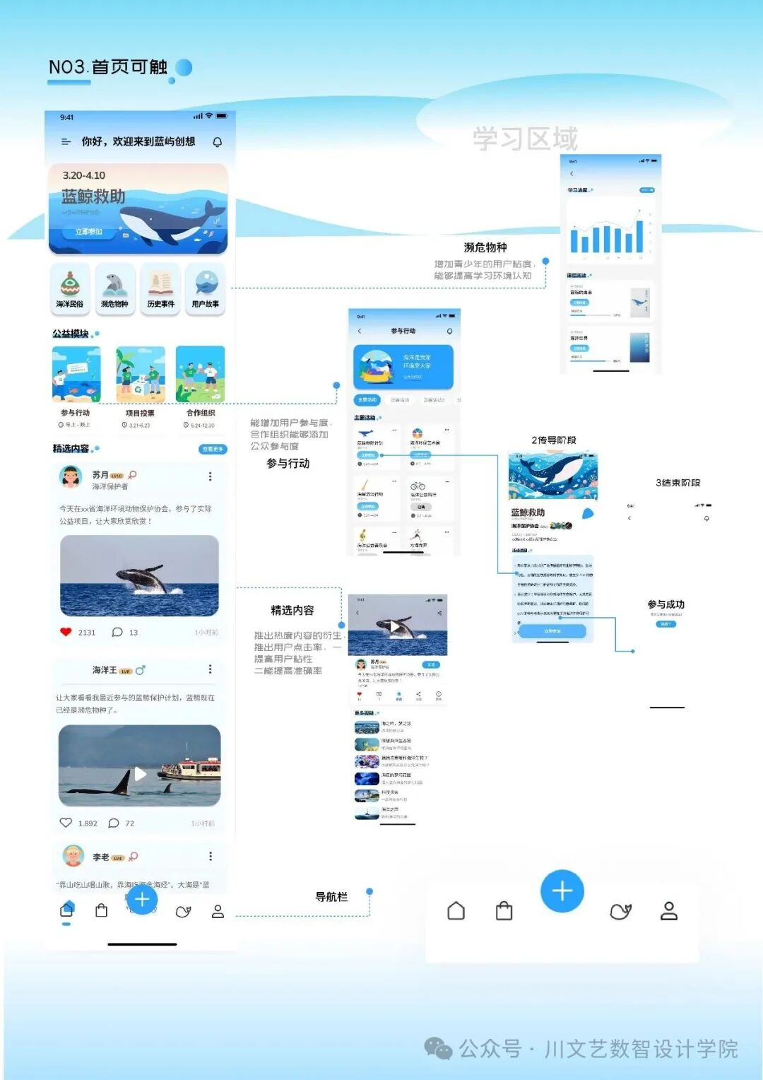 本作品以打造海洋生态旅行品牌为核心,设计理念是用可持续方式连接人与自然、传递环保理念,探寻深海奥秘,记录海洋生态。每场旅行都是对蔚蓝星球的承诺,通过打造品牌提升保护影响力,吸引更多人参与,形成商业与生态共赢循环。